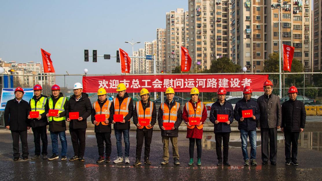 在新春佳節(jié)即將到來之際,1月19日上午,市總工會副主席戚安寶帶隊來到運河路快速化改造工程項目部,親切慰問了一線施工人員,并為他們送上了新春的祝福。城控集團(tuán)副總經(jīng)理季紅軍、工會主席張正斌參加了慰問。