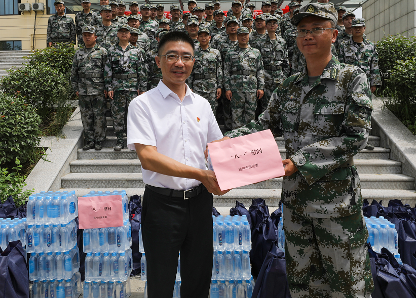 在第93個“八一”建軍節(jié)到來之際,適逢2020年揚州市民兵應(yīng)急營集中輪訓(xùn)備勤,7月31日上午,城控集團(tuán)黨委副書記徐飛前往揚州市國防園民兵集訓(xùn)基地,看望慰問參訓(xùn)基干民兵。集團(tuán)相關(guān)部室,參訓(xùn)基干民兵所在單位分管負(fù)責(zé)人參加活動。