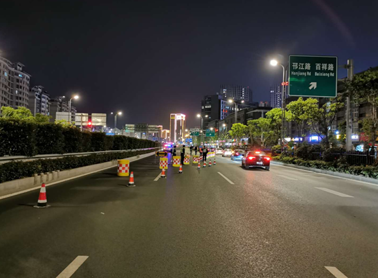 2020年5月7日 21點(diǎn)跨江陽路段高架鋼箱梁開始吊裝。