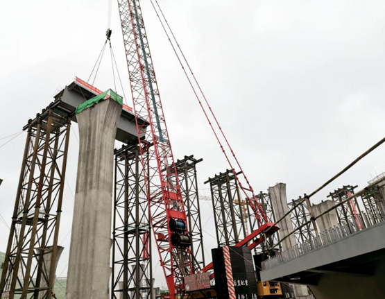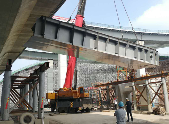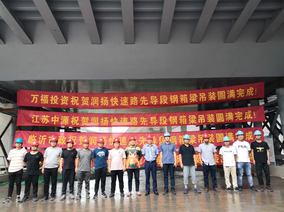 2020年5月28日 8點(diǎn)15分揚(yáng)州市目前橋梁工程中最重最長的單塊鋼結(jié)構(gòu)箱梁吊裝,標(biāo)志著跨路段鋼箱梁吊裝結(jié)束。
