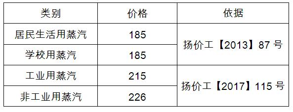 揚(yáng)州市區(qū)蒸汽價(jià)格表