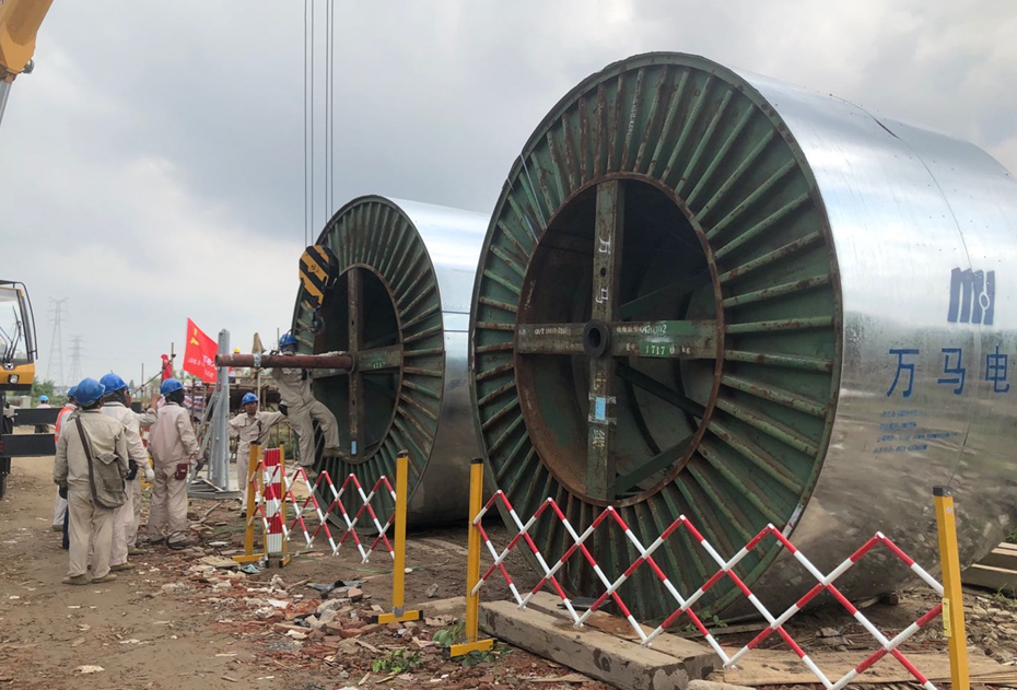 隨著快速路工程的穩(wěn)步推進(jìn),電力管線遷改工作也在同步進(jìn)行?!耙欢?、架起來!”9月11日下午,在萬(wàn)福快速路220KV電力管廊工程電纜隧道內(nèi),一根長(zhǎng)約450米,重約20噸的電纜線盤被電力工人用機(jī)械抬到了托臂上。