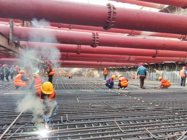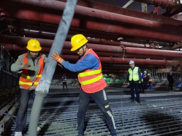 為保證首塊底板優(yōu)質(zhì)高效完成澆筑,項目部高度重視施工安全和工程質(zhì)量,并充分做好施工前各項準備工作。一是確保項目管理人員和作業(yè)人員安全、技術(shù)交底到位;二是落實領(lǐng)導帶班制、旁站制及三檢制,嚴把混凝土原材料質(zhì)量關(guān),澆筑過程中技術(shù)人員全程盯控,嚴格按照施工工藝施工,實現(xiàn)質(zhì)量控制目標;三是安全員從過程上嚴格監(jiān)督安全隱患,堅持早發(fā)現(xiàn)、早報告、早解決,做好安全防范工作。