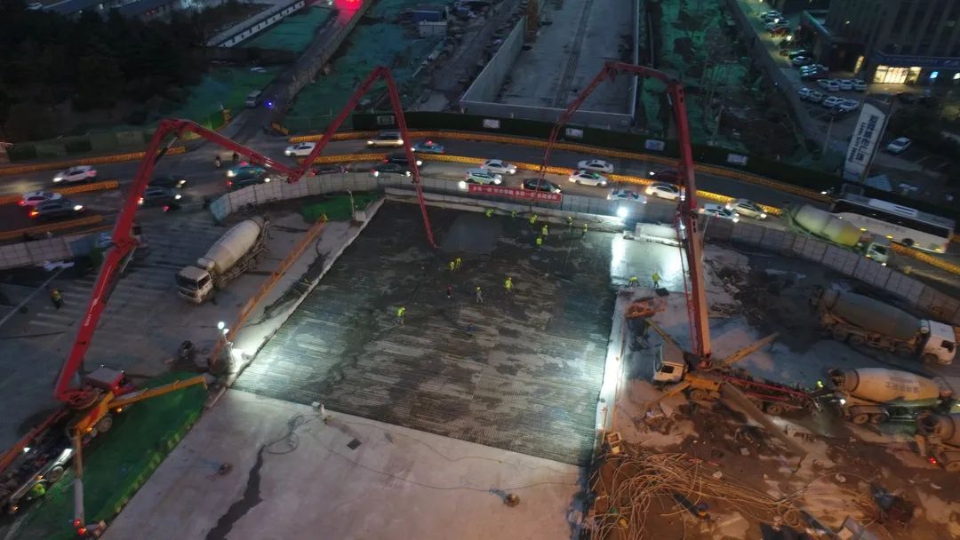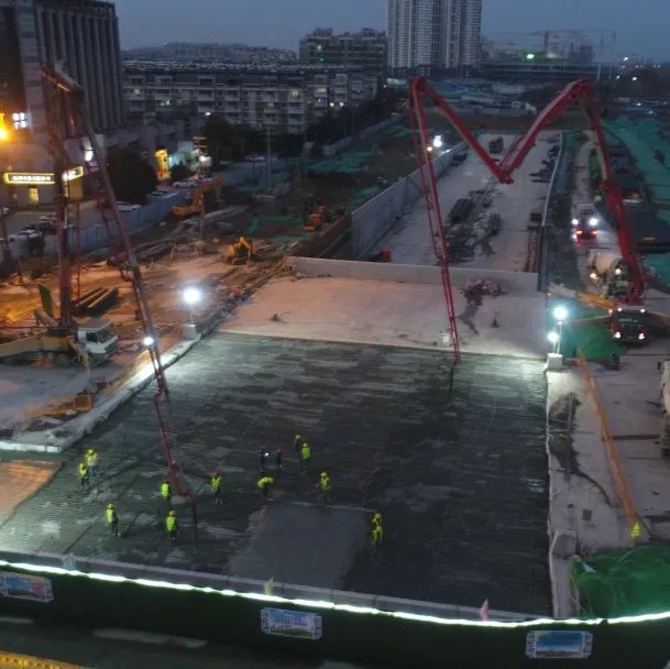 1月3日22:00,經(jīng)過近13個(gè)小時(shí)的連續(xù)作業(yè),運(yùn)河路文昌路隧道最后一塊頂板順利澆筑,標(biāo)志著隧道主體結(jié)構(gòu)全面完工!