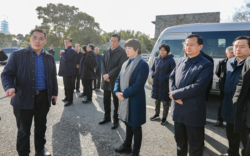 1月13日下午,市長張寶娟一行來到大學路南延三期工程現(xiàn)場,實地調(diào)研工程進展情況。副市長何金發(fā),市政府秘書長尤在晶、副秘書長林寶榮和市相關(guān)部門負責人陪同調(diào)研,城控集團董事長葉善祥、副總經(jīng)理季紅軍參加活動。
