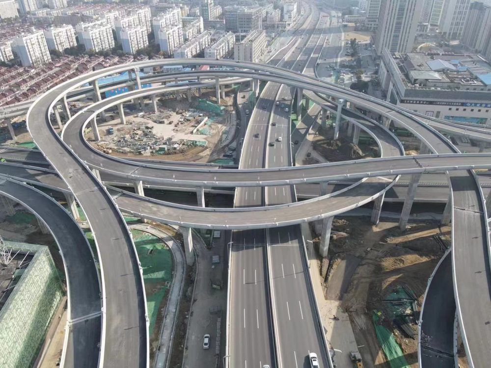 潤揚(yáng)路快速化改造(潤揚(yáng)路-江陽路互通立交)工程為五層渦輪型全互通立交,是揚(yáng)州市快速路網(wǎng)重大節(jié)點(diǎn)項(xiàng)目。工程主線高架橋北起百吉巷,南至牧羊路,共15聯(lián)48跨,全長1.52公里;8條互通匝道共58聯(lián)162跨,全長5.04公里。工程橋梁瀝青攤鋪面積總計達(dá)9.4萬平方米。
