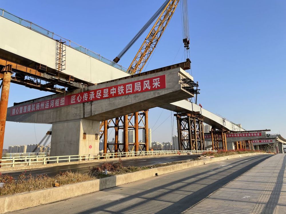 3月27日下午14點(diǎn)16分,運(yùn)河南北路快速化改造二期工程(萬(wàn)福西路-物港路北)項(xiàng)目跨古運(yùn)河段夫差橋首聯(lián)鋼箱梁橫向頂推施工順利完成,標(biāo)志著工程取得了階段性勝利。