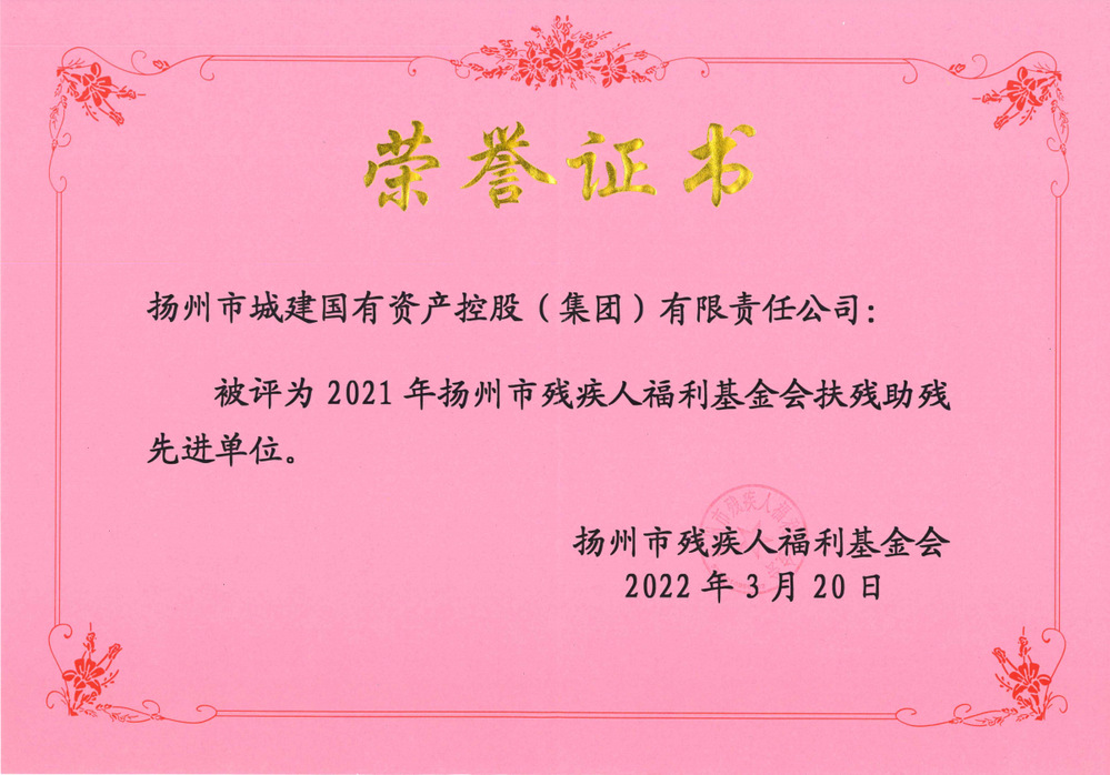 2021年揚州市殘疾人福利基金會扶殘助殘先進單位
