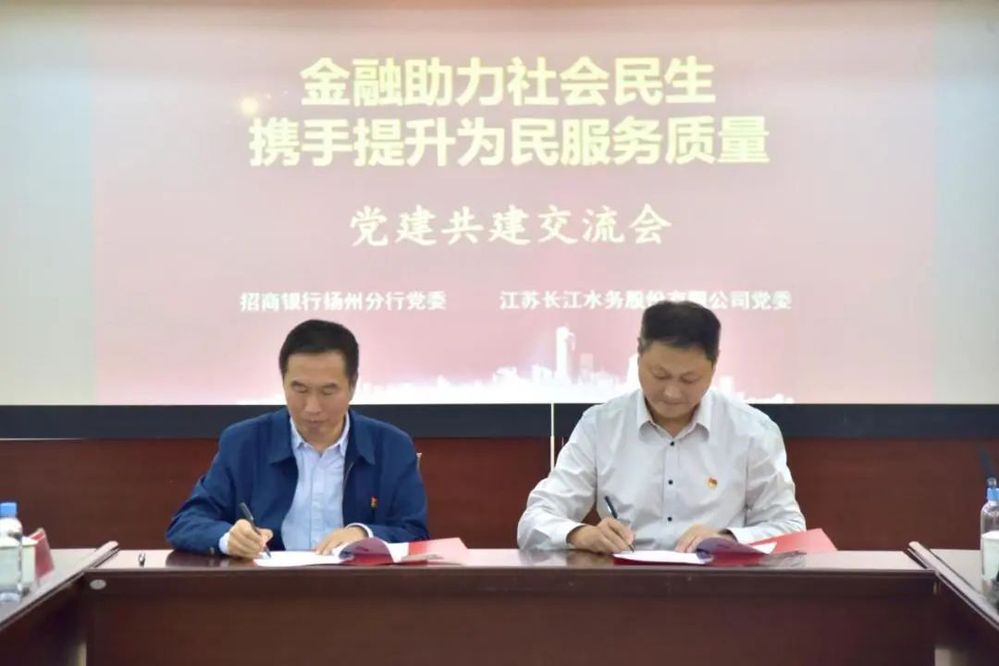 招商銀行揚(yáng)州分行一行人員首先參觀了長(zhǎng)江水務(wù)寶帶營(yíng)業(yè)大廳、第五黨支部黨員活動(dòng)室和供水調(diào)度(客服)中心。隨后,共建雙方分別介紹了經(jīng)營(yíng)發(fā)展情況,就提高服務(wù)質(zhì)量和服務(wù)能力等開展了座談交流。城控集團(tuán)黨委委員、長(zhǎng)江水務(wù)黨委書記、董事長(zhǎng)張正斌和招商銀行揚(yáng)州分行黨委書記、行長(zhǎng)喻坤簽署《黨建共建協(xié)議書》。
