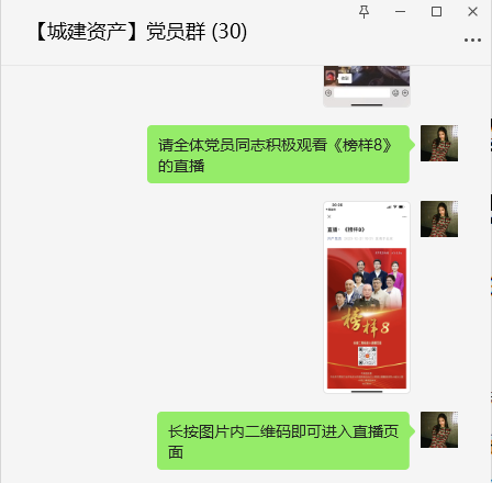 《榜樣8》專題節(jié)目直播當(dāng)天及時在公司黨員群內(nèi)轉(zhuǎn)發(fā)觀看時間和觀看方式