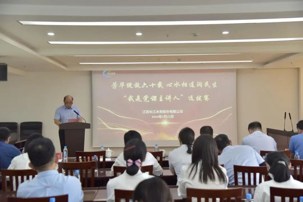 2024年是中華人民共和國成立75周年,是實現(xiàn)“十四五”規(guī)劃目標任務的關鍵一年,同時也是長江水務公司建廠60周年,為了深入學習貫徹習近平新時代中國特色社會主義思想和黨的二十大精神,生動講好中國共產(chǎn)黨的故事、中國特色社會主義的故事、新時代企業(yè)職工的故事,5月22日下午,長江水務開展“芳華綻放六十載 心水相連潤民生——我是黨課主講人”賽黨課活動。公司領導班子成員、各支部書記及各支部黨員職工代表參加活動。
