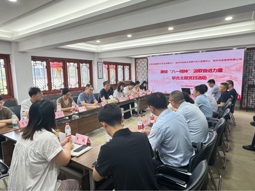 8月1日上午,江蘇省城鎮(zhèn)供水安全保障中心、揚(yáng)州市給排水和燃?xì)鉄崃芾碇行募皳P(yáng)州市政管網(wǎng)公司聯(lián)合開(kāi)展“賡續(xù)‘八一精神’,汲取奮進(jìn)力量”主題黨日活動(dòng)。省城鎮(zhèn)供水安全保障中心主任徐建,市住建局四級(jí)調(diào)研員駱俊東,城控集團(tuán)黨委委員、副總經(jīng)理夏長(zhǎng)明,市給排水和燃?xì)鉄崃芾碇行?、管網(wǎng)公司主要負(fù)責(zé)人和相關(guān)人員參加活動(dòng)。