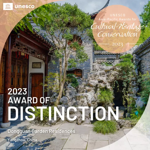 東關(guān)歷史文化街區(qū)位于揚(yáng)州明清古城東北隅,東起古運(yùn)河,西至國慶路,南臨文昌中路,北達(dá)鹽阜東路,面積3.4平方公里,是城內(nèi)迄今保存最為完整、規(guī)模最大的歷史文化街區(qū)。街區(qū)沿線歷史遺存薈萃,其中個(gè)園、汪氏小苑、唐宋東門遺址、逸圃為國家級(jí)文物保護(hù)單位,曹起溍故居、壺園、劉文淇故居、丁姓鹽商住宅等為市級(jí)文物保護(hù)單位。2023年末,聯(lián)合國官網(wǎng)發(fā)布了《2023年亞太文化遺產(chǎn)保護(hù)獎(jiǎng)獲獎(jiǎng)?wù)呙麊巍贰!皷|關(guān)歷史文化街區(qū)園宅保護(hù)與傳承復(fù)興項(xiàng)目”從亞太地區(qū)8個(gè)國家48個(gè)參賽項(xiàng)目中脫穎而出,獲評(píng)聯(lián)合國教科文組“2023年度亞太文化遺產(chǎn)保護(hù)獎(jiǎng)杰出獎(jiǎng)”。是全國唯一獲得“杰出獎(jiǎng)”的文保項(xiàng)目。聯(lián)合國教科文組織在項(xiàng)目評(píng)審語中寫到“東關(guān)歷史文化街區(qū)是傳統(tǒng)文化與當(dāng)代景觀設(shè)計(jì)的完美結(jié)合,為亞太地區(qū)古典園林保護(hù)及活化利用提供了重要參考”。