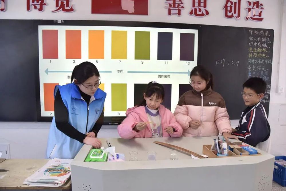 活動現(xiàn)場,志愿者通過“理論+實踐”雙線并行的方式,向?qū)W生們普及水資源知識。理論環(huán)節(jié)中,志愿者以通俗易懂的語言講解了水資源的稀缺性、日常節(jié)水技巧以及長江流域水生態(tài)保護的重要性。實踐環(huán)節(jié)則設(shè)置“水的酸堿度”小實驗,學生們在指導(dǎo)下動手操作簡易酸堿度檢測小實驗,觀察不同酸堿度下試紙的變化,讓同學們深刻理解健康飲水的重要性。