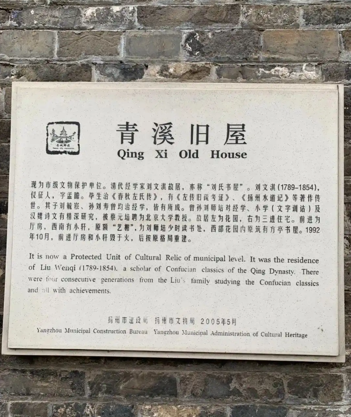 四、青溪舊屋:文化與歷史的交匯點(diǎn)青溪舊屋,作為劉文淇、劉師培的故居,不僅承載著家族的記憶與榮耀,更見證了揚(yáng)州學(xué)術(shù)文化的傳承與發(fā)展。在這里,一代又一代的學(xué)者,以筆為劍,以墨為鋒,書寫著屬于自己的輝煌篇章。如今,這座古老的院落雖已歷經(jīng)滄桑,但它所蘊(yùn)含的文化底蘊(yùn)與歷史價值,卻歷久彌新,熠熠生輝。這里的一磚一瓦、一草一木,都承載著厚重的文化與歷史。它們靜靜地訴說著過往的故事,也期待著未來的傳承與發(fā)展。