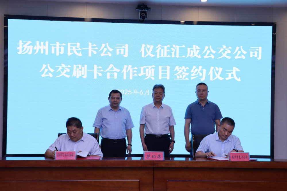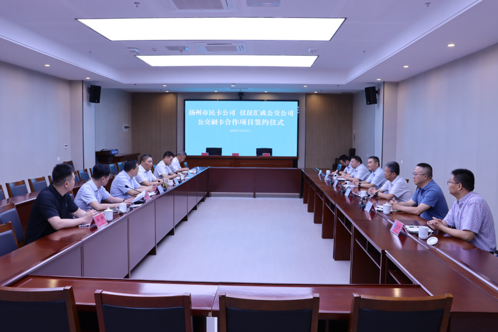 在全體與會(huì)人員見(jiàn)證下,雙方共同簽署了揚(yáng)州、儀征公交刷卡合作協(xié)議。
