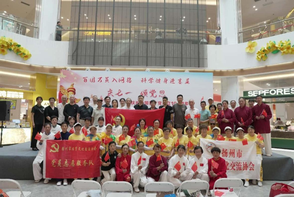 活動(dòng)現(xiàn)場(chǎng),社區(qū)健身隊(duì)通過(guò)活力四射的紅色主題廣場(chǎng)舞和剛?cè)峁矟?jì)的太極表演,展現(xiàn)了紅色情懷,豐富了全民健身活動(dòng)內(nèi)涵;“黨史+健身”主題互動(dòng)問(wèn)答環(huán)節(jié)亮點(diǎn)頻出,通過(guò)百年黨史與科學(xué)健身知識(shí)的巧妙結(jié)合,讓參與者在趣味競(jìng)答中感悟紅色力量、收獲健康知識(shí)。隨著全體人員齊聲高唱《沒(méi)有共產(chǎn)黨就沒(méi)有新中國(guó)》,激昂的歌聲將活動(dòng)推向高潮。