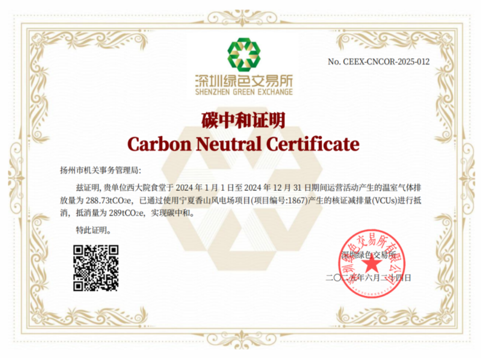 近日,由能源集團攜手機關(guān)事務(wù)局共同打造的全省首個機關(guān)零碳食堂項目順利投運,該項目位于揚州市政府西大院食堂,采用“光伏+碳匯+數(shù)字能源調(diào)度”綜合用能方式,即通過樓頂分布式光伏發(fā)電供應(yīng)“綠電”,結(jié)合購買碳匯抵消剩余排放,最終實現(xiàn)食堂運營碳中和。2024年西大院食堂運營全年產(chǎn)生溫室氣體排放量288.73噸,能源集團提供充分技術(shù)支持,通過碳匯抵消,實現(xiàn)了從能源供給到終端消費的全鏈條減排,并獲得了深圳綠色交易所碳中和認(rèn)證。當(dāng)“光盤行動”遇上“綠電革命”,零碳食堂不僅是公共機構(gòu)主動領(lǐng)跑,率先推動綠色減排的務(wù)實舉措,更是政企合作共探區(qū)域綠色低碳轉(zhuǎn)型的生動實踐。