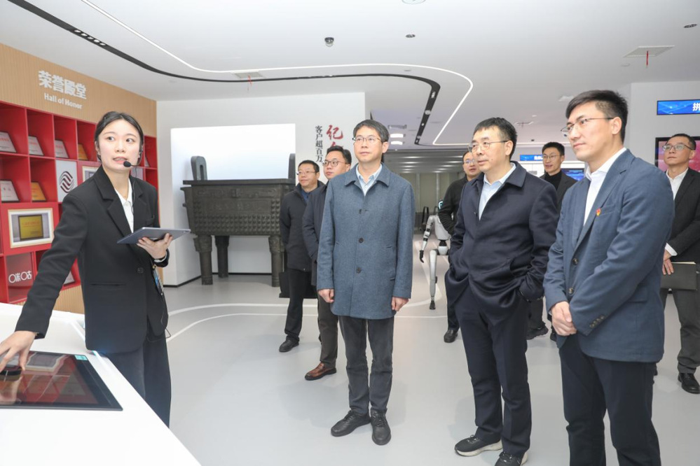 簽約儀式前,方璇智一行走進揚州移動“智韻揚州·5G+未來智慧展廳”,系統(tǒng)了解大數(shù)據(jù)、人工智能等前沿技術在智慧生活、智慧城市、智慧能源等領域的創(chuàng)新應用成果,并現(xiàn)場體驗“靈犀曉伴”智能交互、無人機巡檢、XR大空間、全息投影等典型應用場景。圍繞市城控集團城市建設、公用事業(yè)、能源產(chǎn)業(yè)等主要業(yè)務板塊,揚州移動針對性介紹了相應的信息化解決方案,為集團數(shù)智化轉型提供重要參考。