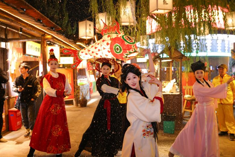 在冬至、元旦、元宵等傳統(tǒng)節(jié)日節(jié)點,巡游活動還將同步推出“魚躍冬至”“魚慶新年”“魚龍鬧元宵”等主題內(nèi)容,以豐富的形式展現(xiàn)節(jié)氣文化與民俗魅力?;顒悠陂g,東關(guān)集內(nèi)還將上演多場揚州地方文藝演出,揚州清曲、古風(fēng)舞蹈、琵琶演奏等節(jié)目輪番登場。此外,現(xiàn)場設(shè)有非遺體驗區(qū),推出揚州篆刻、烙畫、魚燈制作、漆扇手作等項目,并匯集地方特色小吃與文創(chuàng)產(chǎn)品,讓游客在觀賞之余,親身體驗傳統(tǒng)技藝、品嘗地道風(fēng)味。 據(jù)統(tǒng)計,自12月15日活動啟動以來,已累計吸引游客超5萬人次打卡。這種“游古城、逛市集、品非遺”的多元體驗?zāi)J?,不僅豐富了市民的文化生活,也進(jìn)一步提升了東關(guān)街作為揚州傳統(tǒng)文化展示窗口的影響力。