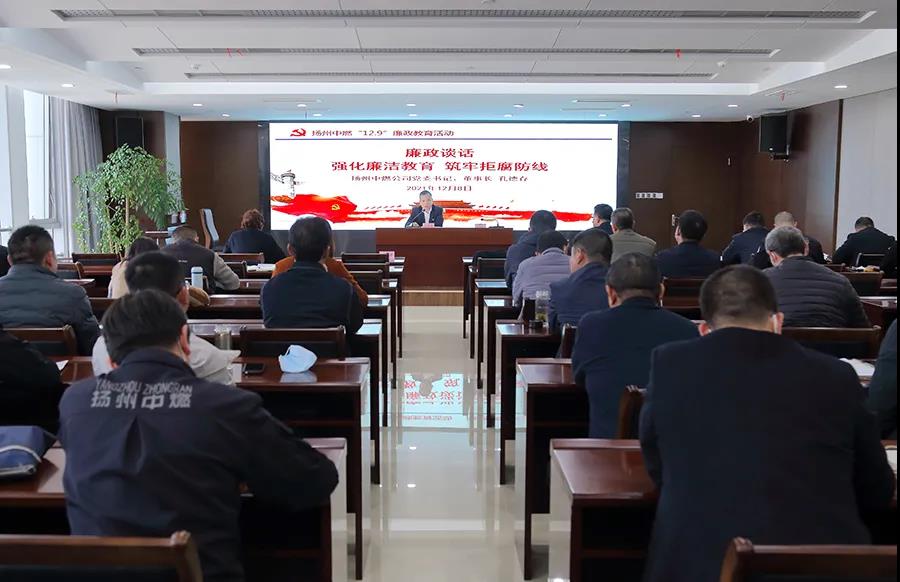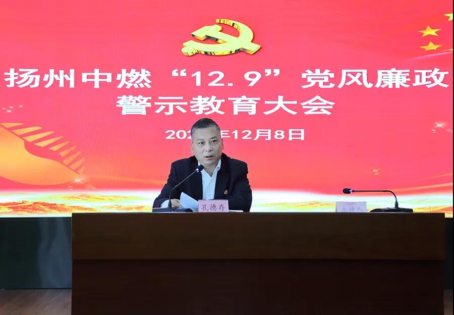 為進一步貫徹落實全面從嚴治黨方針,強化黨員干部的廉潔自律意識,推動黨風廉政建設向縱深發(fā)展,12月8日下午,揚州中燃公司召開黨風廉政警示教育專題大會。公司領導班子全體成員、中層干部及關鍵崗位人員參加會議。