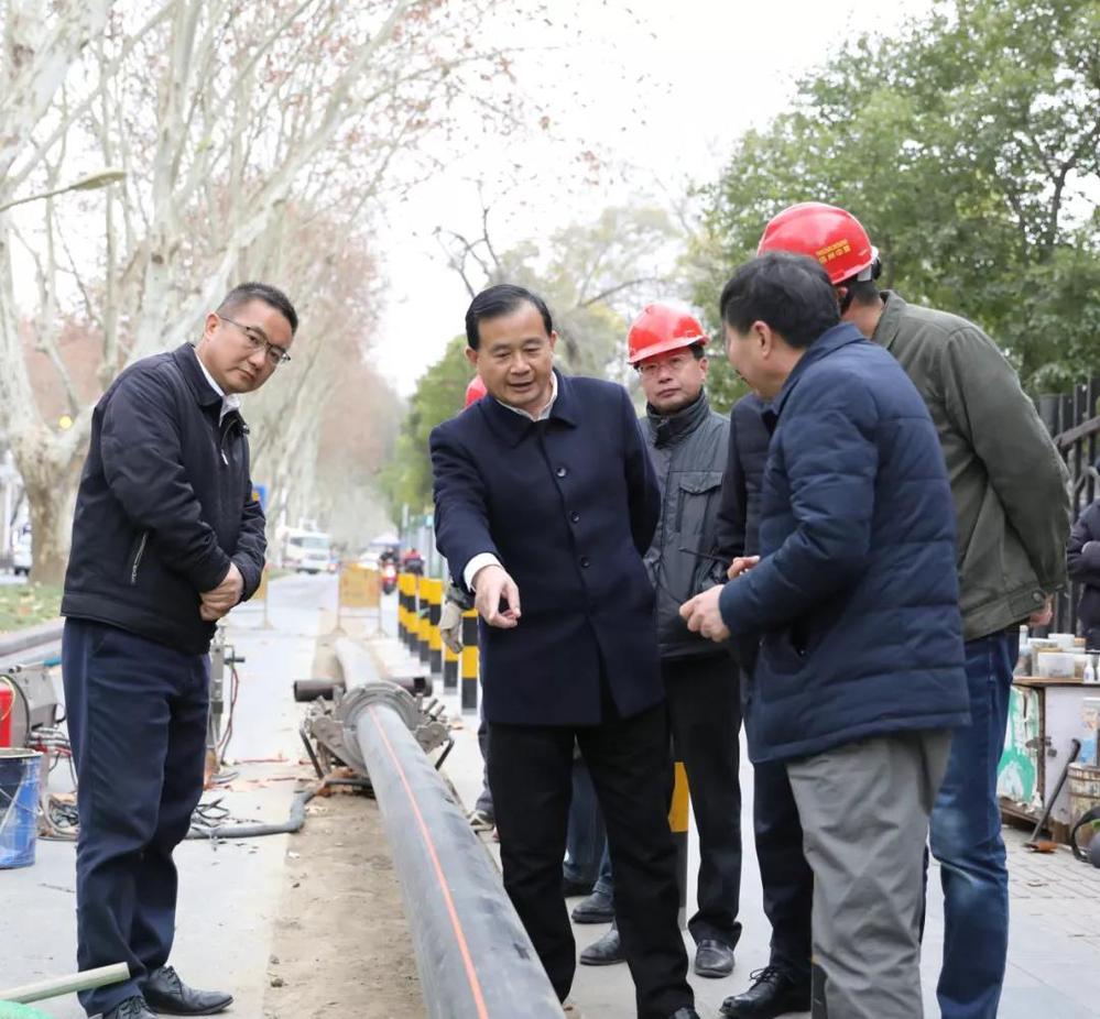 在老舊燃氣管網(wǎng)改造大學(xué)南路施工場地,葉善祥查看了管道施工情況,了解項目進展,要求在確保施工安全前提下,小心謹(jǐn)慎規(guī)范作業(yè),妥善做好路面交通的警示和引導(dǎo),保障施工和交通的同步安全。