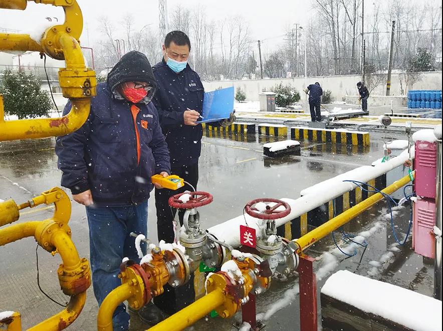 在楊廟液化氣場站,灌裝班組員工頂風(fēng)冒雪,堅(jiān)守崗位,在保證灌裝工作安全有序開展的同時(shí),對場站設(shè)備設(shè)施,進(jìn)行新一輪巡查檢修工作,確保在雨雪天氣下,所有設(shè)備設(shè)施正常運(yùn)行。
