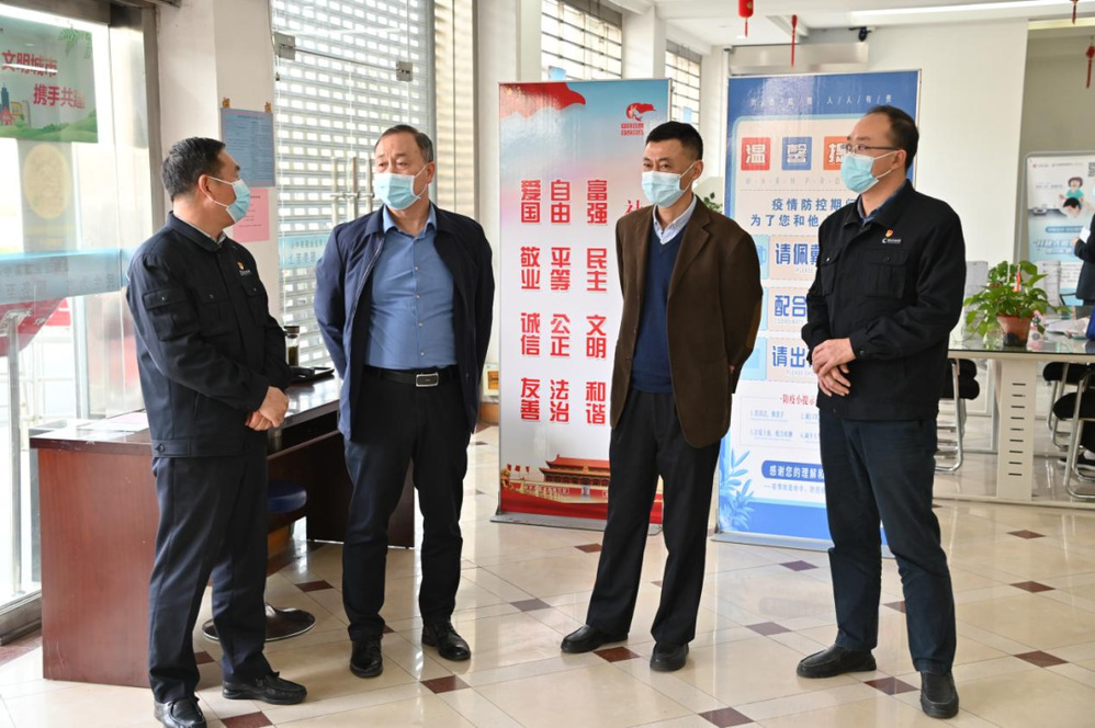 3月15日下午,市國資委副主任夏心忠?guī)ш牂z查城控集團(tuán)下屬企業(yè)疫情防控工作落實情況。城控集團(tuán)副董事長戚磊陪同檢查。
