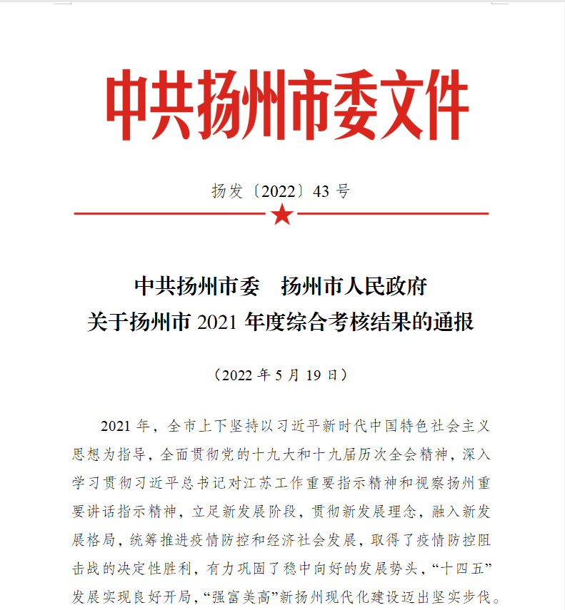 會(huì)議通報(bào)了揚(yáng)州市2021年度綜合考核結(jié)果,城控集團(tuán)再次被評為市級(jí)機(jī)關(guān)綜合考核“一等等次單位”,這是集團(tuán)連續(xù)5次、歷史第8次獲得該項(xiàng)榮譽(yù),充分肯定了城控集團(tuán)在轉(zhuǎn)型發(fā)展道路上取得的成績和成效。