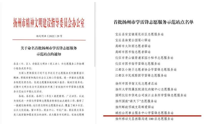 近日,從揚(yáng)州市文明辦傳來喜報(bào),城控公用事業(yè)服務(wù)中心(長(zhǎng)江水務(wù)服務(wù)廳)被命名為2022年首批揚(yáng)州市學(xué)雷鋒志愿服務(wù)示范站點(diǎn)。