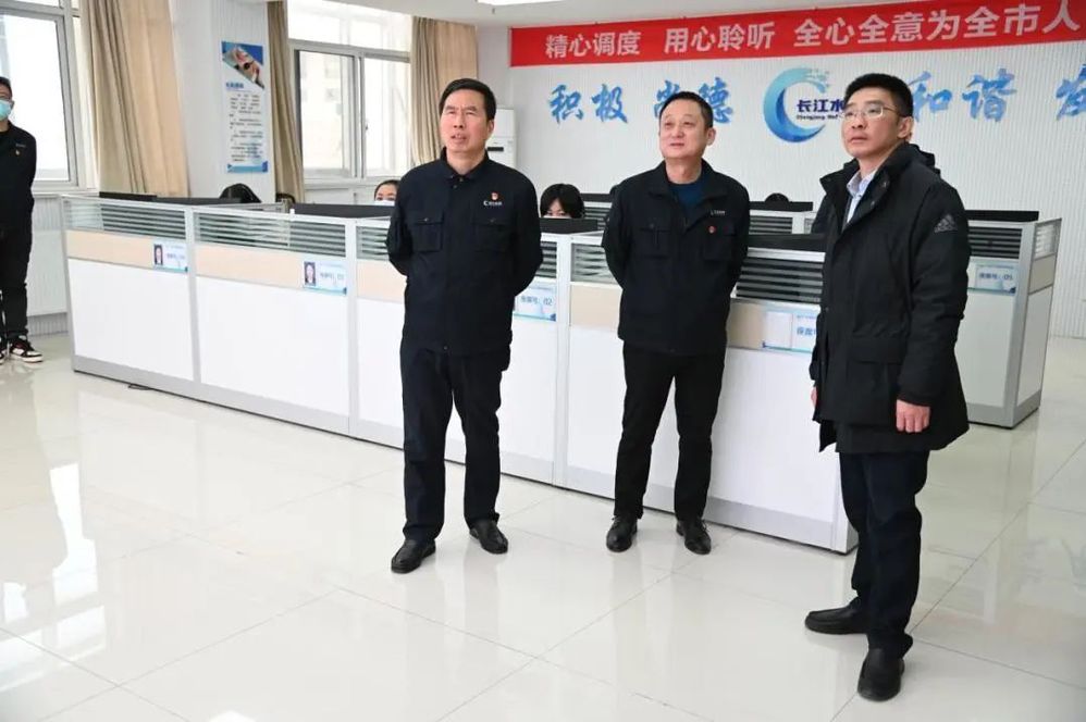 在長江水務(wù)公司調(diào)度指揮中心,徐飛聽取了供水調(diào)度和搶維修工作的情況匯報(bào),對自來水入戶防凍措施提出優(yōu)化建議。他強(qiáng)調(diào),應(yīng)急值班值守對冬季保供尤關(guān)重要,在充分做好應(yīng)急保障的同時(shí),要做好搶維修人員的出行、作業(yè)和防疫安全的保護(hù),保證安全無間隙,服務(wù)有溫度。