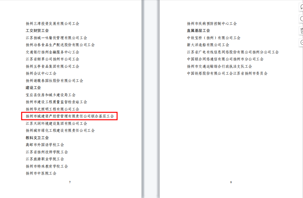 2022年,城建資產(chǎn)聯(lián)合基層工會緊緊圍繞公司年度中心任務(wù),團結(jié)帶領(lǐng)廣大干部職工,積極致力于企業(yè)文化建設(shè)發(fā)展,以為職工謀福利為己任,扎實履行工會職能,關(guān)心關(guān)愛職工身心健康,秉承“干實事、辦好事、解難事”的宗旨,從“心”出發(fā),真正做職工貼心的“娘家人”。一份耕耘一份收獲,在全體職工齊心協(xié)力的努力下,城建資產(chǎn)聯(lián)合基層工會被揚州市總工會授予“揚州市模范職工之家”榮譽稱號。