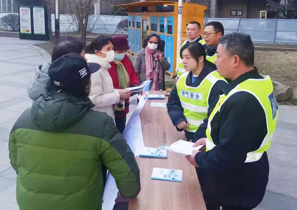 在社區(qū)廣場,志愿者們?yōu)樯鐓^(qū)居民發(fā)放燃氣安全使用手冊,講解燃氣安全使用知識及注意事項,走進孤寡老人家中開展燃氣安全檢查,免費更換不銹鋼波紋管。