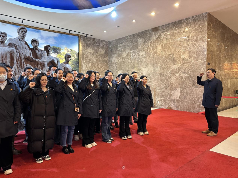 緬懷英烈祭忠魂,撫今追昔思奮進(jìn)。在革命烈士紀(jì)念碑前,全體人員整齊列隊(duì)、肅穆佇立,向革命烈士三鞠躬致以崇高的敬意和深切的哀悼,并向革命先烈敬獻(xiàn)鮮花。隨后,在講解員的引導(dǎo)下,全體人員參觀揚(yáng)州革命烈士紀(jì)念館,學(xué)習(xí)烈士事跡,重溫黨的歷史。館內(nèi)記載了江上青、許曉軒等全國(guó)知名烈士和揚(yáng)州各個(gè)革命時(shí)期200多名烈士的生平事跡和斗爭(zhēng)史料,革命先烈們?cè)⊙獖^戰(zhàn)、英勇不屈的革命精神深深打動(dòng)著在場(chǎng)所有人。全體黨員舉起右拳重溫入黨誓詞,重憶入黨初心,錚錚誓言在館內(nèi)久久回蕩。