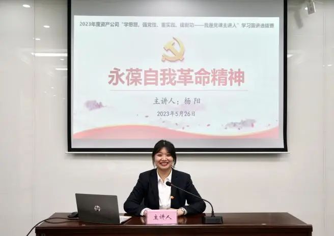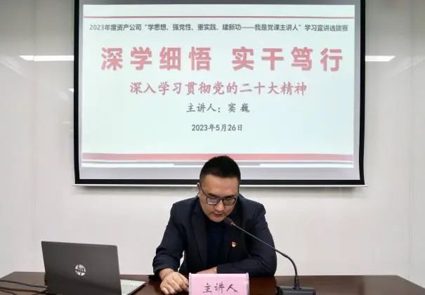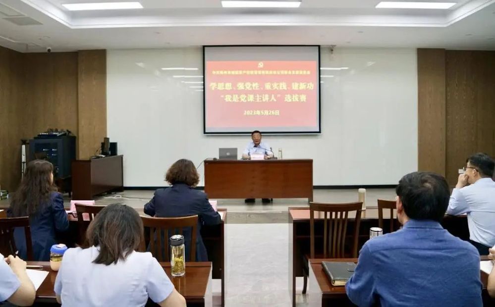 為深入學(xué)習(xí)貫徹習(xí)近平新時(shí)代中國特色社會(huì)主義思想和黨的二十大精神,引導(dǎo)廣大黨員干部提高黨性修養(yǎng),凝聚思想共識(shí),推進(jìn)資產(chǎn)公司高質(zhì)量發(fā)展,5月26日下午,資產(chǎn)公司聯(lián)合黨支部開展了“學(xué)思想、強(qiáng)黨性、重實(shí)踐、建新功——我是黨課主講人”賽黨課活動(dòng)。聯(lián)合黨支部全體黨員參加活動(dòng)。