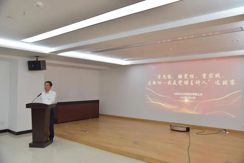 為深入學(xué)習(xí)宣講習(xí)近平新時(shí)代中國特色社會(huì)主義思想和黨的二十大精神,進(jìn)一步統(tǒng)一思想、振奮精神、凝聚力量,激勵(lì)廣大干部職工在強(qiáng)國復(fù)興之路上追夢(mèng)奮進(jìn),為全面推進(jìn)中國式現(xiàn)代化揚(yáng)州新實(shí)踐貢獻(xiàn)力量,5月26日下午,長江水務(wù)開展“學(xué)思想、強(qiáng)黨性、重實(shí)踐、建新功——我是黨課主講人”賽黨課活動(dòng)。長江水務(wù)公司領(lǐng)導(dǎo)班子成員、各支部書記及各支部黨員職工代表參加活動(dòng)。