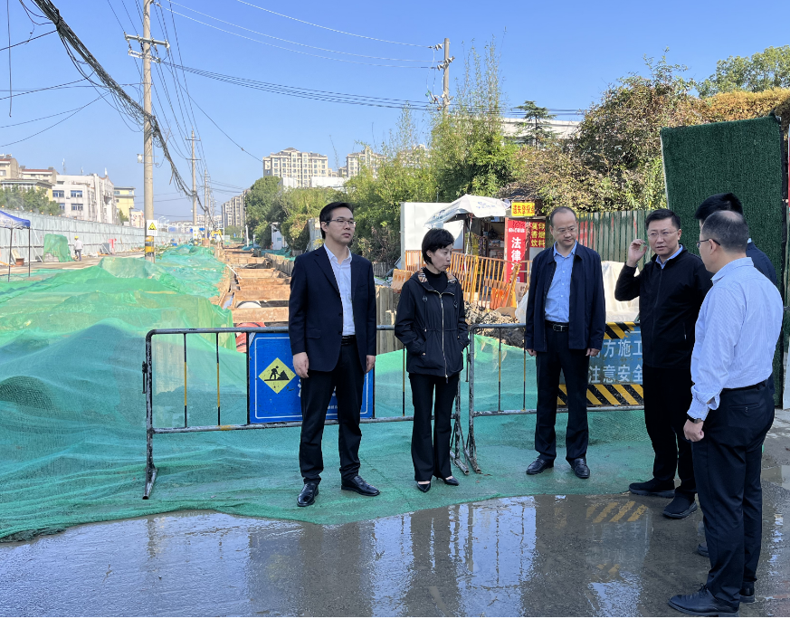 10月20日上午,廣陵區(qū)區(qū)長郎俊帶隊(duì)來到上善公司江都路(萬福路—文昌路)雨污水管道及景觀提升工程三標(biāo)段施工現(xiàn)場(chǎng),主要督查在建工地?fù)P塵管控情況。區(qū)政府辦、生態(tài)環(huán)境局、住建局、城管局、交通局、商務(wù)局主要負(fù)責(zé)人及上善公司總經(jīng)理付元寧陪同參加督察。