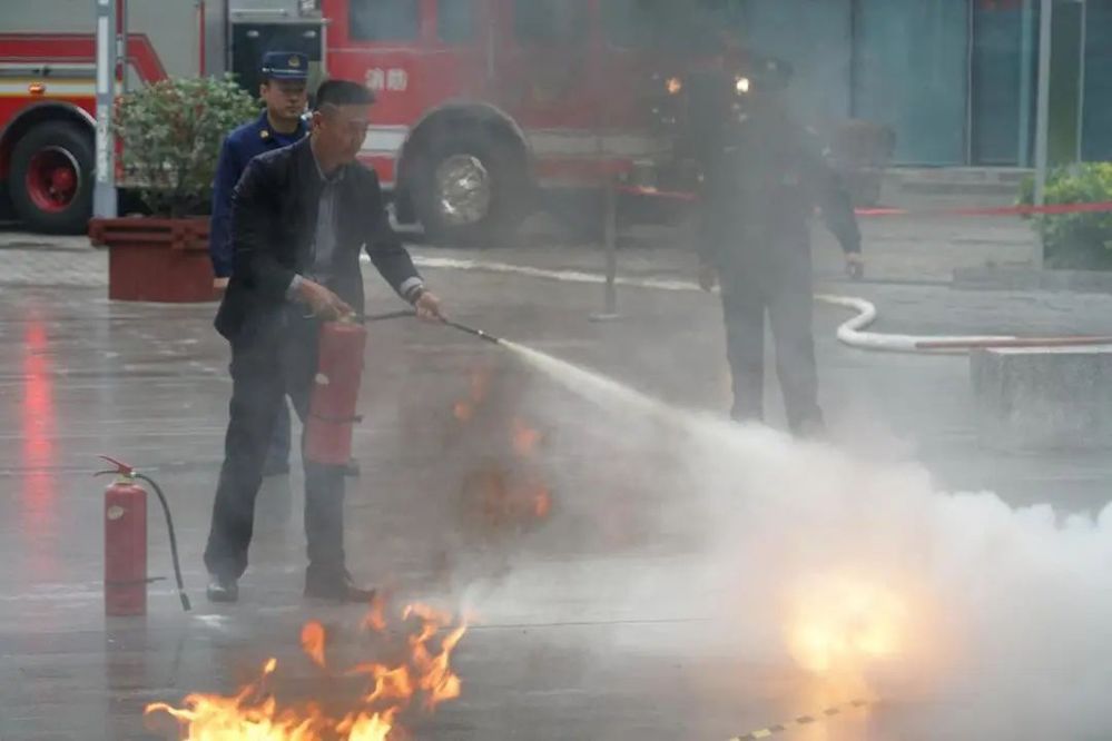 在消防疏散應(yīng)急演練環(huán)節(jié),演練人員模擬國泰大廈發(fā)生火災(zāi),開展了值班人員確認(rèn)火情、初期滅火、人員疏散逃生、報警和引接消防員等應(yīng)急演練流程。同時,邗江區(qū)消防大隊在內(nèi)街廣場開展了消防滅火器的使用培訓(xùn),職工、物業(yè)管理、業(yè)主代表等人員參與了滅火器使用實操。