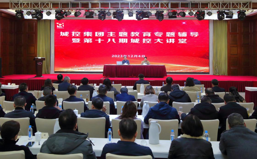 12月4日上午,城控集團(tuán)在街南書屋國(guó)學(xué)館舉辦主題教育專題輔導(dǎo)暨第十八期“城控大講堂”,集團(tuán)黨委書記、董事長(zhǎng)張思忠及領(lǐng)導(dǎo)班子成員出席活動(dòng),集團(tuán)機(jī)關(guān)部室全體人員、集團(tuán)委派任職干部,各子公司領(lǐng)導(dǎo)班子成員、基層黨支部書記及干部職工代表共240余人參加活動(dòng)。集團(tuán)黨委副書記、副董事長(zhǎng)、總經(jīng)理潘涵主持大講堂活動(dòng)。