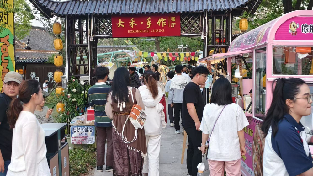 市集內(nèi)匯聚南北風(fēng)味小吃,烤肉在炭火上跳躍,肉香裹挾著孜然的辛香直鉆鼻腔;琥珀色的精釀啤酒泛著綿密泡沫,麥芽香與果香交織,瞬間激活味蕾。