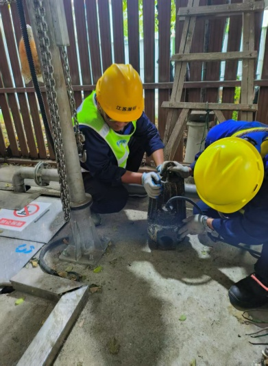 此次巡檢特別強化安全管理全鏈條檢查,不僅全面梳理各項安全措施落實情況,還對防汛應(yīng)急車輛(吸污車、排水泵、應(yīng)急救援車等)、消防器材配備、應(yīng)急照明系統(tǒng)、防汛物資儲備等進行逐項清點,同時對泵站、截流井內(nèi)的設(shè)備設(shè)施進行了深度保養(yǎng)。此外,工作人員深入泵站、截流井周邊區(qū)域,對管網(wǎng)走向、環(huán)境隱患進行實地勘察,并逐一對污水管道及泵池進行疏通、清淤,提前防范外部因素對泵站及截流井汛期運行的干擾。