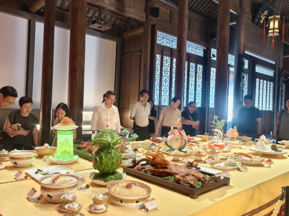 莫清一行首先了解了街區(qū)的地域特點(diǎn)、業(yè)態(tài)布局以及街區(qū)提改升級(jí)的理念等基本情況;隨后,參觀了淮揚(yáng)菜博物館、唐朝詭事錄VR劇場(chǎng);還在街區(qū)的美食市集體驗(yàn)了揚(yáng)州獅子頭、揚(yáng)州炒飯等經(jīng)典美食的制作。
