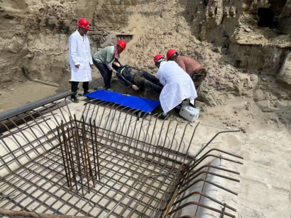 此次應急演練模擬施工現(xiàn)場塔吊基坑邊坡因連續(xù)降雨出現(xiàn)局部坍塌,1名工人被困,周邊土體存在繼續(xù)滑移的風險等情形。演練活動涉及應急隊伍集結、受傷人員醫(yī)療救護、工程應急處置搶險等多個環(huán)節(jié)?,F(xiàn)場總指揮收到救援消息后,立即啟動應急救援預案。各小組響應迅速、職責明確,警戒組及時封鎖現(xiàn)場;救援組進行隱患排查,制定支護方案并對基坑周邊進行加固,防止邊坡發(fā)生二次坍塌;醫(yī)療救護組開展救援,對傷者進行包扎檢查,并將傷者送至路邊等待救護車到場送至醫(yī)院。在各小組的密切配合下,在全體演練人員的共同努力下,演練取得圓滿成功。