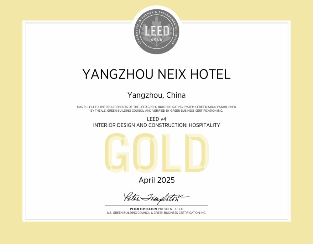 今天的LEED金級(jí)認(rèn)證,是對(duì)項(xiàng)目全周期“綠色基因”的最佳注腳。從規(guī)劃設(shè)計(jì)階段對(duì)節(jié)能材料的選用,到建設(shè)過程中對(duì)施工污染的嚴(yán)控、資源循環(huán)利用的實(shí)踐;從酒店運(yùn)營(yíng)中低碳管理的探索、綠色服務(wù)的創(chuàng)新,到對(duì)“綠色建筑”理念的堅(jiān)守與投入,每一步都凝聚各方的專業(yè)指導(dǎo)和技術(shù)支持,對(duì)街區(qū)綠色運(yùn)營(yíng)的深耕。