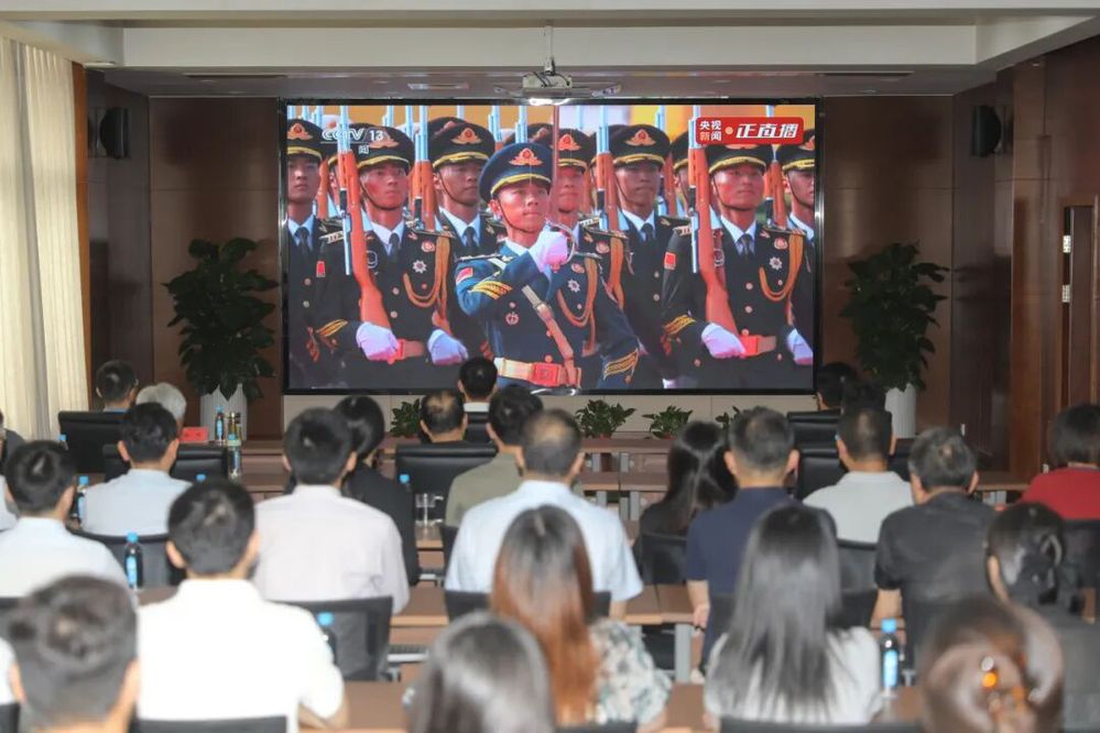 集中觀看現(xiàn)場氣氛莊重肅穆,大家全神貫注地觀看直播,認(rèn)真聆聽習(xí)近平總書記重要講話,深刻感悟抗戰(zhàn)勝利的偉大意義和歷史啟示。當(dāng)國旗護(hù)衛(wèi)隊邁著鏗鏘步伐走來,當(dāng)鮮艷的五星紅旗冉冉升起,當(dāng)新型裝備方隊展示大國重器時,大家不由涌現(xiàn)出對祖國的深情熱愛和崇敬之情,同時為國家科技的飛速發(fā)展和人民軍隊的強(qiáng)盛軍威感到無比驕傲和自豪。