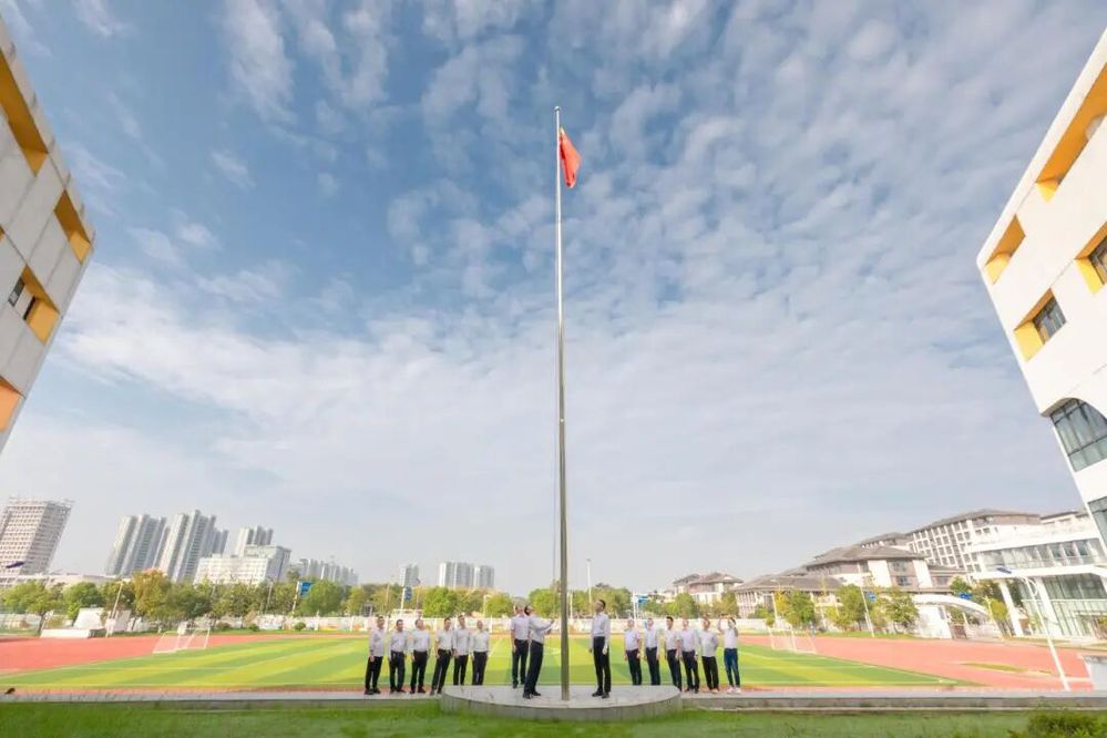 上午8時(shí)整,儀式正式開始。三名護(hù)旗手邁著鏗鏘有力、整齊劃一的步伐,護(hù)衛(wèi)著鮮艷的五星紅旗走向升旗臺(tái)?!跋驀臁炊Y!”的口令響起,伴隨著雄壯激昂的《義勇軍進(jìn)行曲》,五星紅旗迎風(fēng)展開,在全場(chǎng)人員深情的注目禮中冉冉升起,直至頂端迎風(fēng)飄揚(yáng)。這一刻,莊嚴(yán)而神圣,濃濃的愛國情懷和自豪感在每個(gè)人心中油然而生。