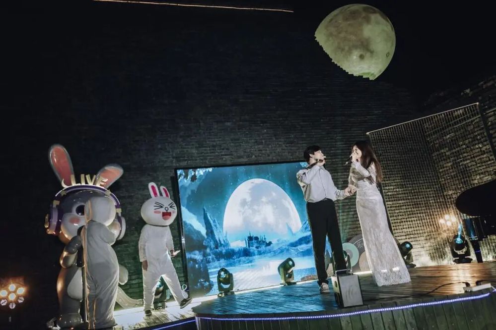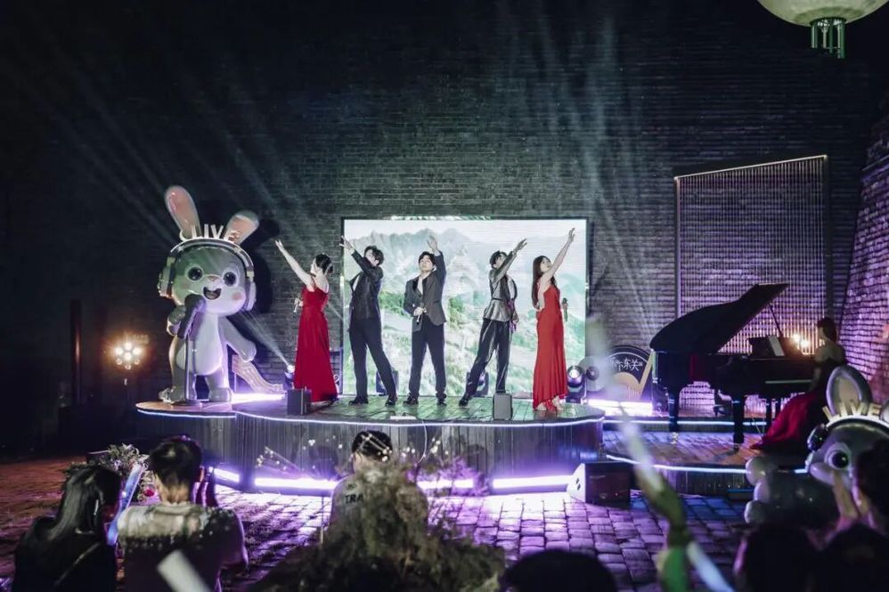 傍晚六點半,音樂會在主持人熱情洋溢的開場中拉開帷幕。在介紹完活動 “文旅賦能、文化碰撞、空間創(chuàng)新”的核心理念與到場嘉賓后,“紙鳶叩月?啟幕盛典” 儀式成為全場首個高潮——嘉賓們共同執(zhí)起 “時光之鑰”,叩響象征古今交融的 “時光月門”。伴隨主題旋律奏響,系著熒光絲帶的大紙鳶從東關(guān)城樓緩緩升空,嫦娥舞者輕盈起舞,冷焰火瀑布傾瀉而下,光影與音樂交織,瞬間將千年甕城化作連接歷史與當下的 “音樂劇場”,正式宣告 “樂下東關(guān)” 微 Live 時光音樂會啟航。