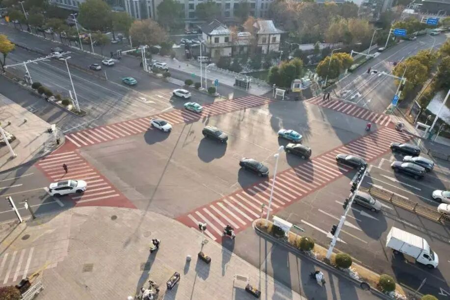 此次彩色路面與普通路面形成高對比視覺沖擊,通過視覺分區(qū),強(qiáng)化“行人優(yōu)先”的路權(quán)屬性,有效減少人車搶行沖突;表面的凹凸紋理使雨天的摩擦系數(shù)提升2-3倍,大幅降低濕滑路段交通事故發(fā)生率;采用環(huán)氧樹脂和陶瓷骨料復(fù)合材料,耐磨性強(qiáng)、抗老化性優(yōu),使用壽命遠(yuǎn)超傳統(tǒng)標(biāo)線,更具實(shí)用性與經(jīng)濟(jì)性,為揚(yáng)州市民交通出行保駕護(hù)航。