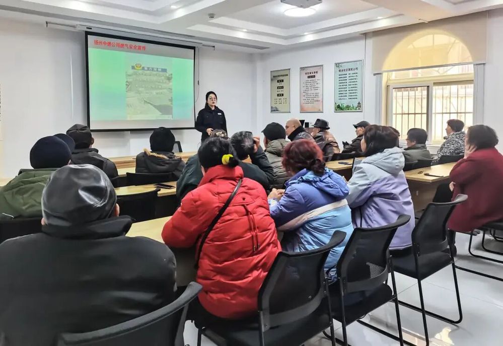 社區(qū)活動室內(nèi),宣講員通過圖文并茂的PPT,為居民帶來了一堂生動的燃氣安全知識講座,詳細講解了日常用氣注意事項、常見隱患識別、泄漏應急處置方法等關(guān)鍵知識,并為居民播放《別讓“李鬼”進家門——燃氣安檢防騙指南》宣傳片,進一步提高居民的安全意識與防騙意識。